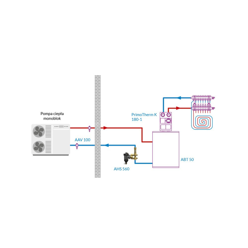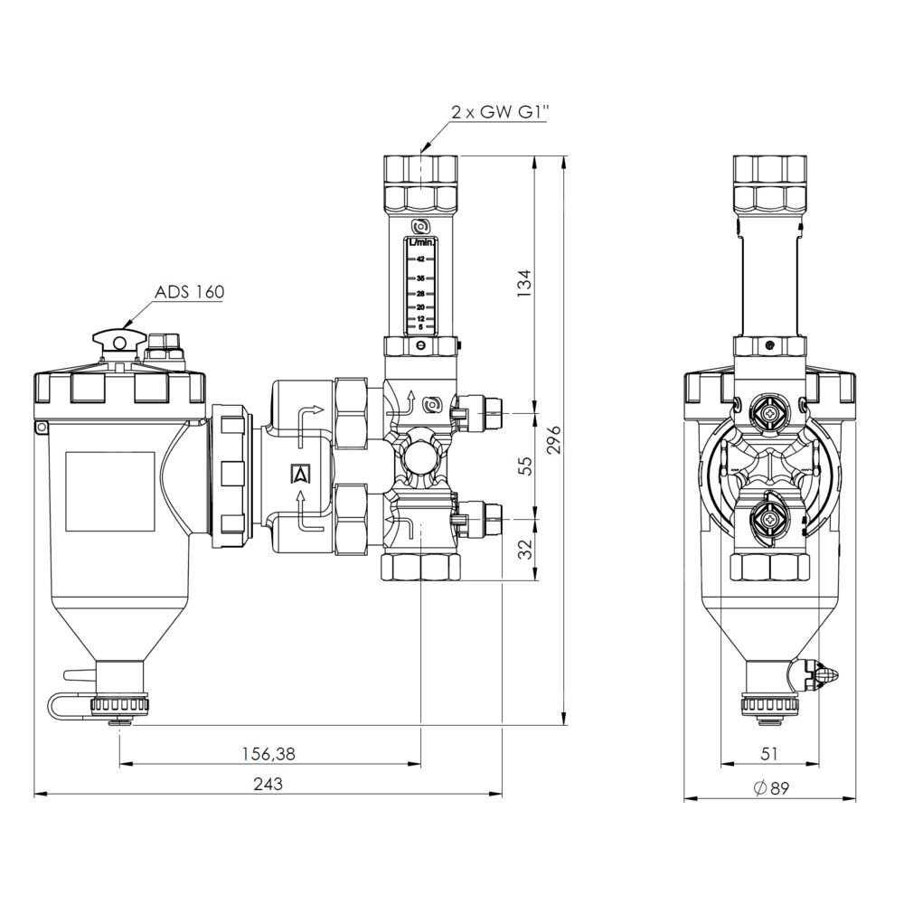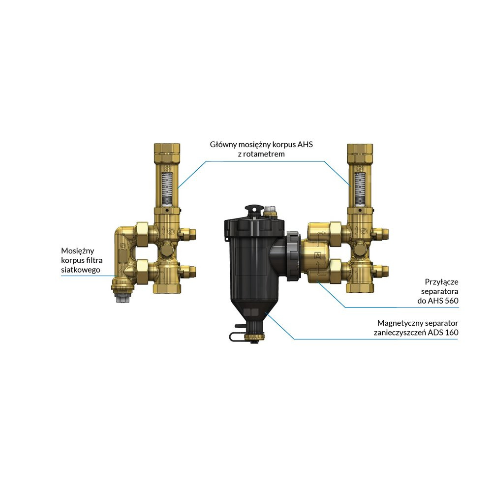 Zespół armatury serwisowej AHS 560 do pomp ciepła, z separatorem zanieczyszczeń ADS 160, z przepływomierzem 5÷42 l/min, przyłącza GW G1''