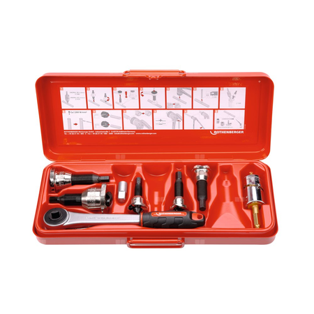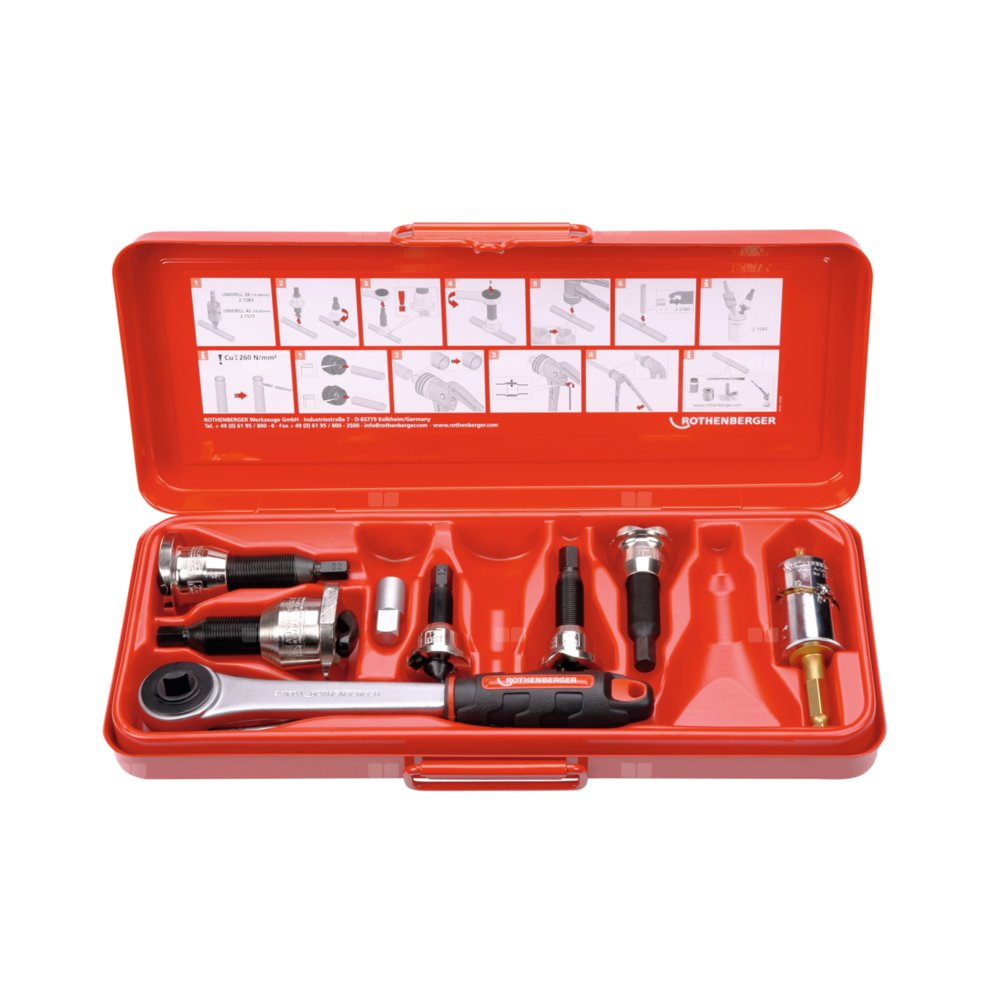 Zestaw składa się z : haka wyoblaka, specjalnej grzechotki (nr 2.2081), cęgów do wyoblania (nr 2.2080), specjalnej wiertnicy nastawnej UNIDRILL Automatik 42 (nr 2.1575). Całość skompletowana w walizce z blachy stalowej (nr 2.2121).