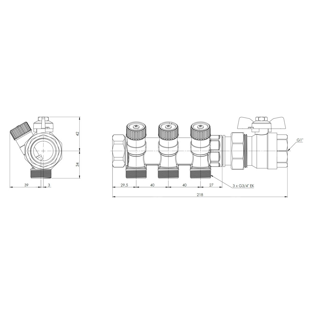 Zestaw podstawowy rozdzielacza do wody użytkowej ADM 213, G1'', 3 punkty poboru