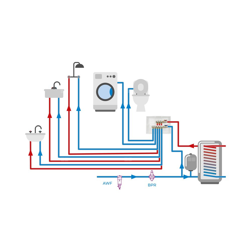 Rozprowadza wodę do poszczególnych punktów poboru.