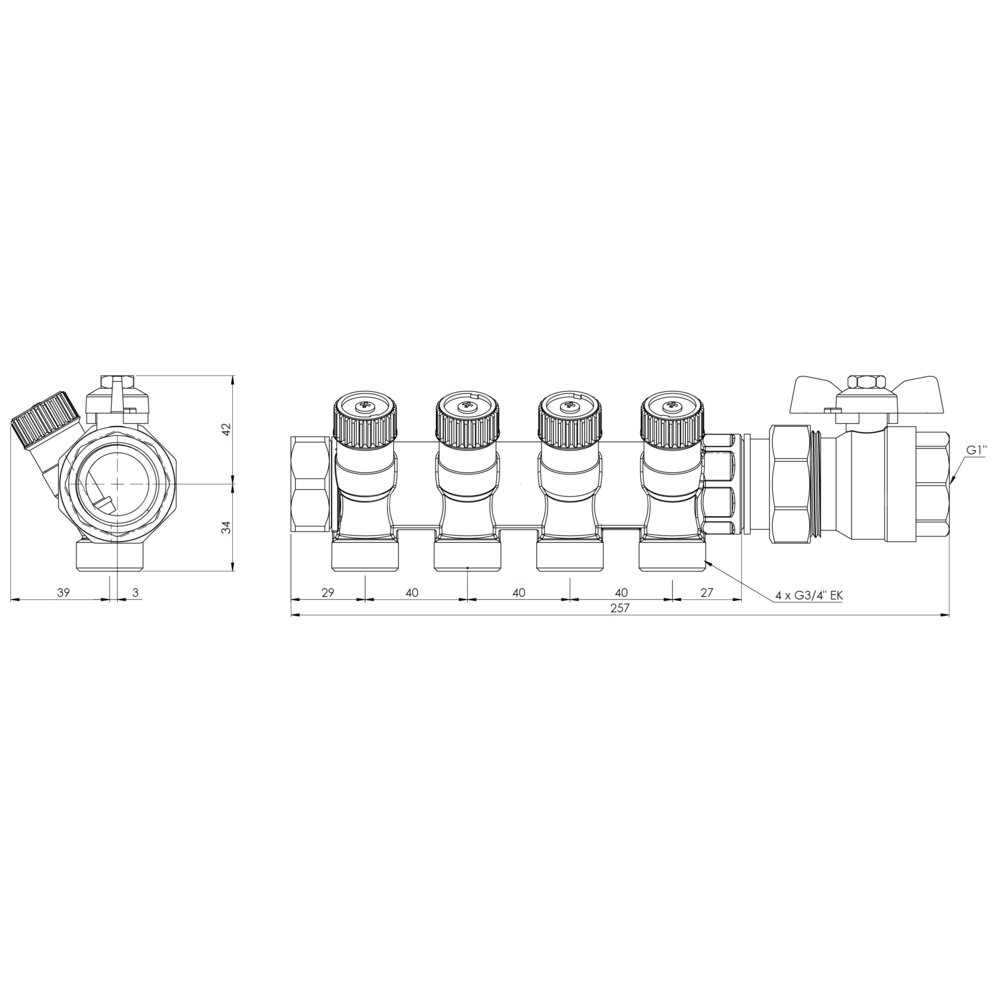 Zestaw podstawowy rozdzielacza do wody użytkowej ADM 214, G1'', 4 punkty poboru