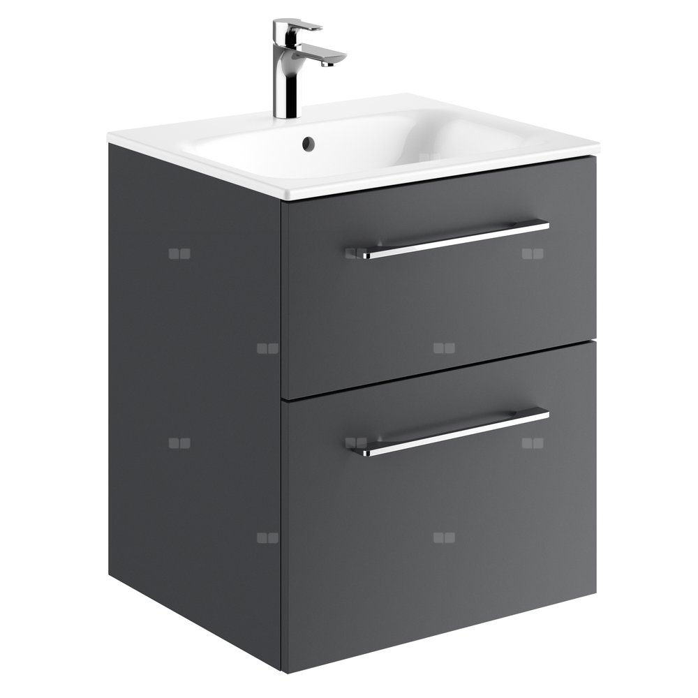 Zestaw umywalki meblowej Geberit Selnova Square, slim rim, z szafką pod umywalkę, z dwoma szufladami: B1=53.8cm, T=50.2cm, Otwór na baterię=Na środku, Przelew=Widoczny, Lava