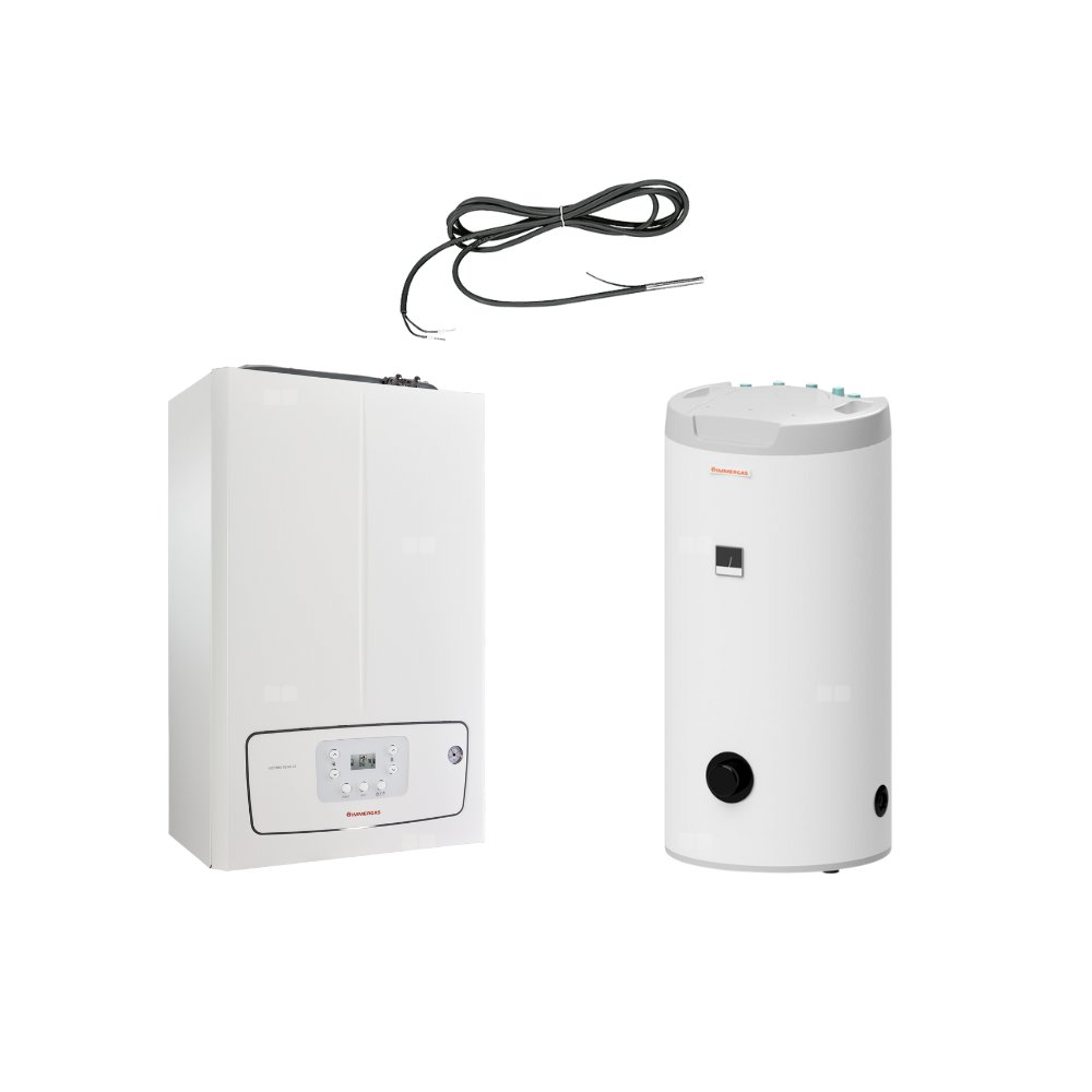 Victrix TERA 35 Standard 160 to zestaw z kondensacyjnym kotłem jednofunkcyjnym VICTRIX TERA V2 35 PLUS EU i zasobnikiem c.w.u. ze stali emaliowanej o pojemności 160 litrów oraz sondą temperatury do zasobnika