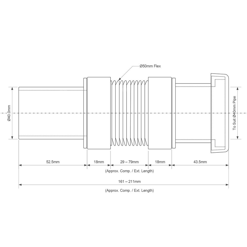 Złączka montażowa harmonijkowa MFLEX-40PF to elastyczny element instalacyjny, zaprojektowany do ułatwienia połączeń systemów odpływowych o średnicy 40x40 mm. Dzięki końcówce mufowej i prostej, złączka zapewnia stabilne i bezpieczne połączenie, idealne do instalacji w miejscach o ograniczonym dostępie. Harmonijkowa konstrukcja pozwala na regulację długości, co zwiększa elastyczność montażu.