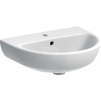 Umywalka GEBERIT Selnova owalna, biała, 500mm, otwór na baterię na środku, z odpływem przelewowym, półka od ściany