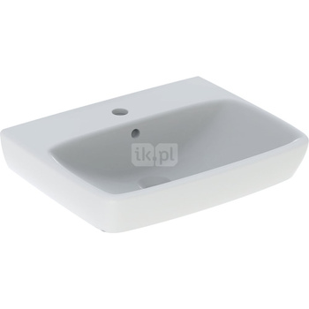 Umywalka GEBERIT Selnova Comfort prostokątna, biała, 600mm, otwór na baterię na środku, bez odpływu przelewowego, półka od ściany